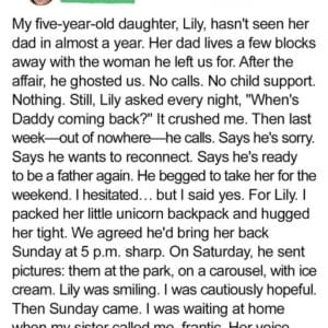 When my ex-husband Leo said he wanted to reconnect with our daughter Lily, I allowed myself hope. After three years of silence and missed birthdays, he suddenly…