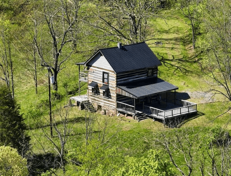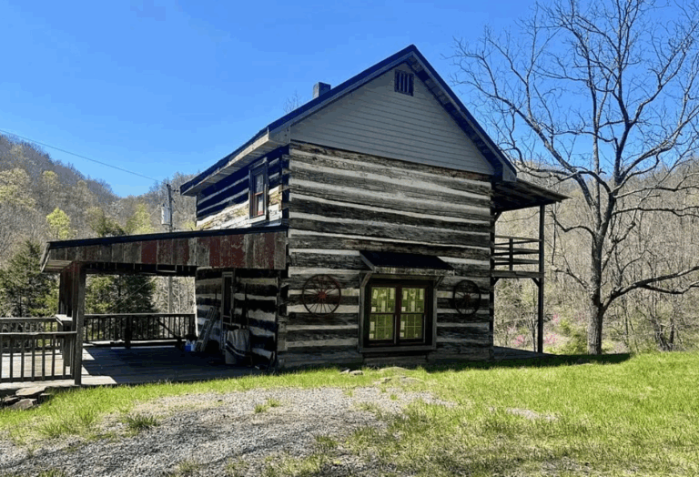 This historic 1893 log cabin in Hinton, West Virginia, sits on 7.82 acres and combines classic charm with modern convenience. Exposed log walls and hardwood floors create a warm, inviting interior, while updates such as a new metal roof, new windows, and an upgraded electrical system ensure reliable everyday living. A cozy wood-burning stove adds comfort during cooler months, and the covered front porch offers a peaceful spot to enjoy morning coffee while taking in expansive mountain views.