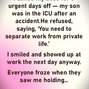 I asked for five urgent days off because my son was in the ICU. My boss refused, saying, “You need to separate work from private life.” So…