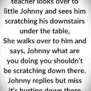 One day in class, the teacher noticed Little Johnny squirming in his seat, shifting left and right like he was sitting on a cactus. She walked over…